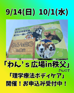 - 10/19(日)&11/16(日)「理学療法ボディケア」埼玉県秩父市@わん’s広場みなさんこんにちは♪わんこのお手当てラボです😊📣開催告知です📣 10/19(日)&11/16(日)わん’s広場さんにて「理学療法ボディケア」の施術会をいたします。 @wans_hb 気持ちの… 続きを読む »10/19(日)&11/16(日)「理学療法ボディケア」埼玉県秩父市@わん’s広場