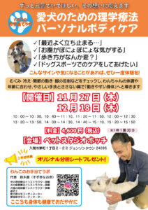 11/27(木)&12/18(木)「愛犬のための理学療法パーソナルボディケア」埼玉県入間市@Pet Studio Hocci