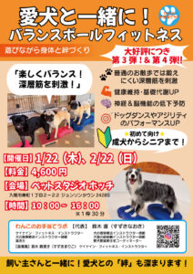 2026年1月22日(木) & 2月22日(日)「愛犬のためのバランスボールフィットネス」第3弾&第4弾 埼玉県入間市@Pet Studio Hocci