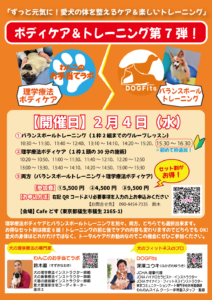 - 2026年1月22日(木) & 2月22日(日)「愛犬のためのバランスボールフィットネス」第3弾&第4弾 埼玉県入間市@Pet Studio Hocciみなさんこんにちは!わんこのお手当てラボです🍀愛犬との絆を深める、大人気の**「愛犬のためのバランスボールフィットネス」**の第3弾&第4弾のご案内です! ※告知後すぐに満席となってしまうため、ご予約はお早めにどうぞ! … 続きを読む »2026年1月22日(木) & 2月22日(日)「愛犬のためのバランスボールフィットネス」第3弾&第4弾 埼玉県入間市@Pet Studio Hocci